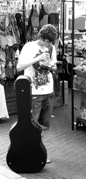 “Right.” (“Here we go again,” I thought, “Why do I attract all the weirdoes and nutters this side of the river?” That crazy bitch with the stud through her lip had shoved me down a flight of stairs and now here was another one with Mad Cow Disease probably about to start foaming at the mouth.) “Do you mind if I sit down? My back’s killing me.”